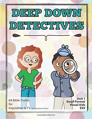 Deep Down Detectives is a very active, very colorful curriculum. So colorful, that each Bible Truth has its own set of colorful pictures. This Visual Aids book includes all of these special elements used in teaching the four Bible Truths (12 lessons) included in Unit 1. It is the companion resource to be used with the Unit 1 Core Curriculum Book, which contains the lesson plans, stories, crafts, games and take home sheets for Unit 1. This is the ESV version of the Unit 1 Visual Aids Book. (There is also an NIV version.) This book contains smaller format.